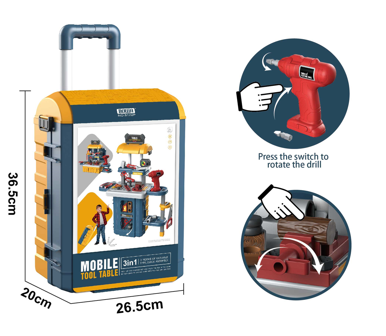 Игровой набор поможет Вашему малышу почувствовать себя взрослым, как папа. Кто починит маме шкафчик или повесит полочку на стену, пока папа на работе? Конечно же мамин помощник! Ведь теперь у него есть весь необходимый набор инструментов!